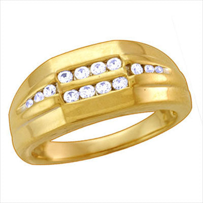 A beautiful band featuring sparkling stones. Crafted in 14k yellow gold. This mesmerizing piece features 14 round full cut diamonds in channel settings. The total diamond weight is approximately 0.38 ct with H in color and SI2 in clarity.