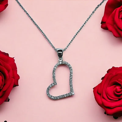 14KW 0.40cttw Diamond Angled Heart Pendant w/18 Inch Cable Chain with Lobster Lock. This Heart Pendant hangs beautifully in a Tilted Angle. It is set with 16 round full cut diamonds which has a weight of 0.40cttw and is G-H color and SI clarity.