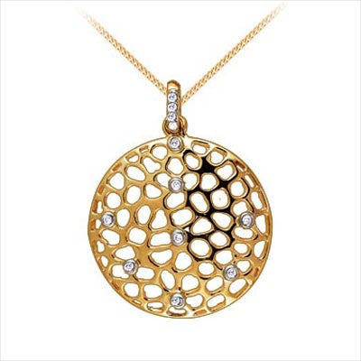 14KY Diamond 0.1500ct Pendant, includes an 18" Chain. Open and airy, and oh so contemporary. This pendant is crafted in polished 14K yellow gold. it features 8 full round cut diamonds in bezel settings and 4 diamonds in prong settings The total diamond weight is approximately 0.1500ct with a color of G-H and a clarity of SI. It measures 1-1/8" x 1-1/8" and includes an 18" curb chain with a lobster clasp.