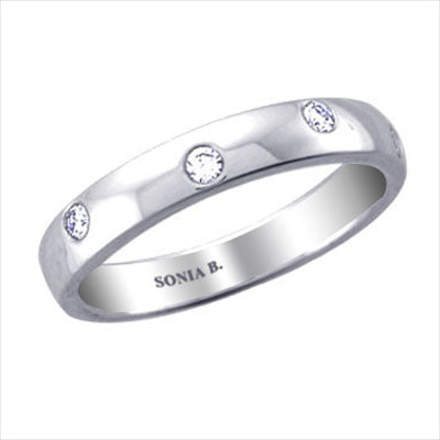 18K White or Yellow Eternity 7 Diamond 0.2450 ct Burnished Set Band. Astounding style for every occasion! This band is crafted in your choice of polished 18K white or yellow gold. It features 7 round full cut diamonds in burnished settings. The total diamond weight is approximately 0.2450ct with a color of G-H and a clarity of SI2.