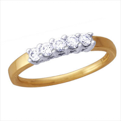 18KTT 0.250ct Diamond Five Stone Ring. Create your own ambiance with a design of lasting allure! This impressive ring is crafted in polished 18K two tone white & yellow gold. It features five round full cut diamonds in prong settings. The total diamond weight is approximately 0.250ct with a color of H and a clarity of SI2.