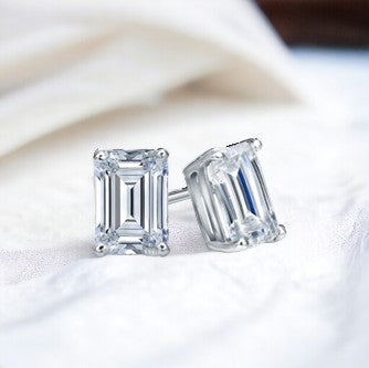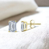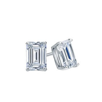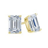 These classic Emerald Cut Stud Earrings are breathtaking. They are available in 14K White or Yellow Gold with a 4 prong diamond setting basket. They have a total diamond weight of 1 cttw. (G color, SI quality) and have a butterfly push back.